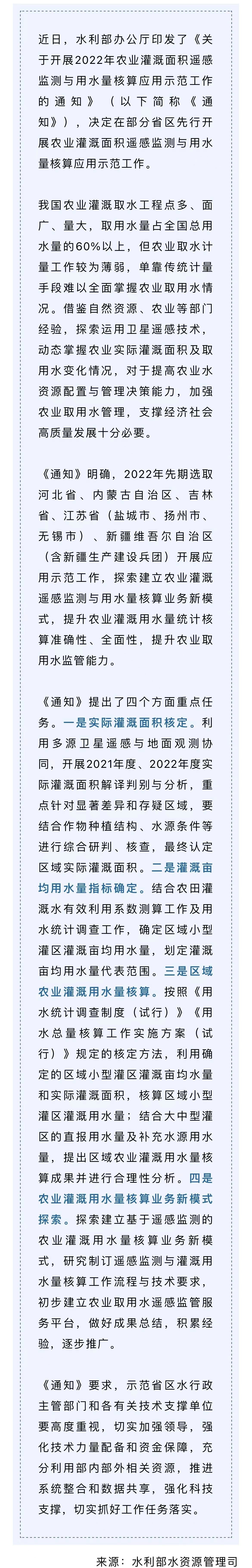 水利部部署開展2022年農業灌溉面積遙感監測與用水量核算應用示范工作